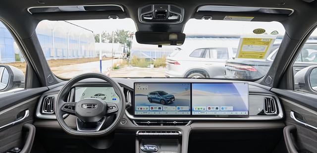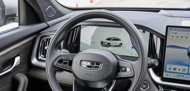 星越L的内饰设计完全不像一台20万以内的车型。横跨中控台的三联屏设计(12.3英寸仪表盘+12.3英寸中控屏+12.3英寸副驾娱乐屏)营造出强烈的科技感。
